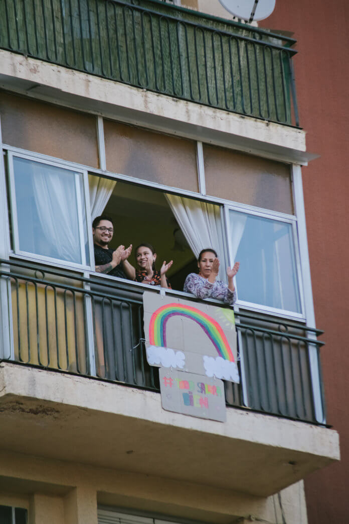 L’hora de sortir als balcons per aplaudir / Fotos: Ferran Palou