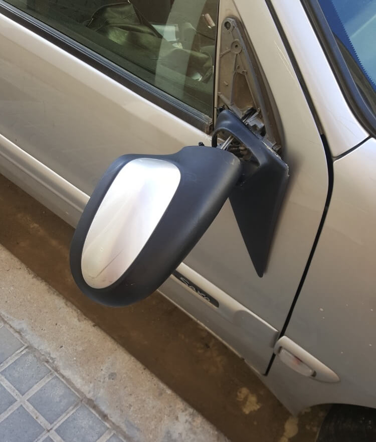Foto: Retrovisor trencat al carrer Santiago Rusiñol, foto @gcasasgell via Twitter