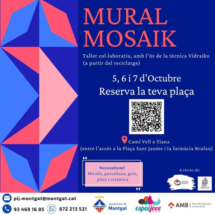 I en el marc d’aquest projecte es realitzaran a Montgat diferents activitats de sensibilització i tallers envers la defensa dels drets ambientals i el canvi climàtic. Entre elles, la realització d’un mural col·laboratiu o mosaic que es farà al barri de Can Maurici del 5 al 7 d’octubre amb la participació de diversos col·lectius de joves i adults de Montgat. Si hi voleu prendre part podeu contactar amb l’Espai Jove de Montgat al WhatsApp 672 21 35 31
