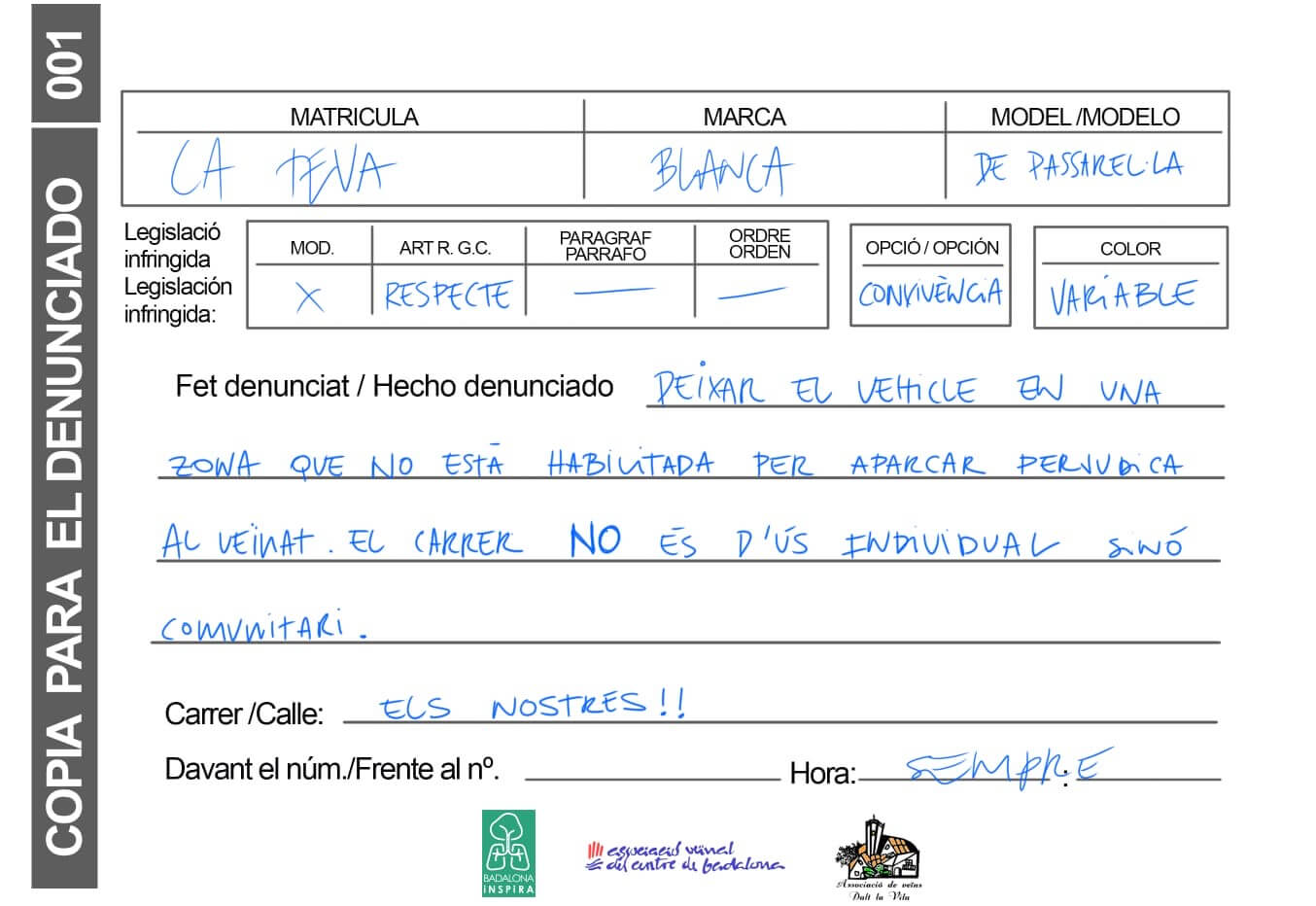 Original campanya de l’associació de veïns del Centre per denunciar els conductors incívics que aparquen en zones no permeses. Cansats de les nombroses incidències viàries, sobretot en els carrers més de vianants, han decidit engegar aquesta campanya. Amb multes simbòliques volen denunciar aquells conductors que aparquen en zones no permeses. Algunes situacions habituals que es troben els veïns del Centre són cotxes que aparquen davant d’una casa, i impedeix sortir de casa amb facilitat. Hi ha carrers, com la part baixa de la Riera Matamoros, on els cotxes aparquen amb tota impunitat, tot i estar prohibit.