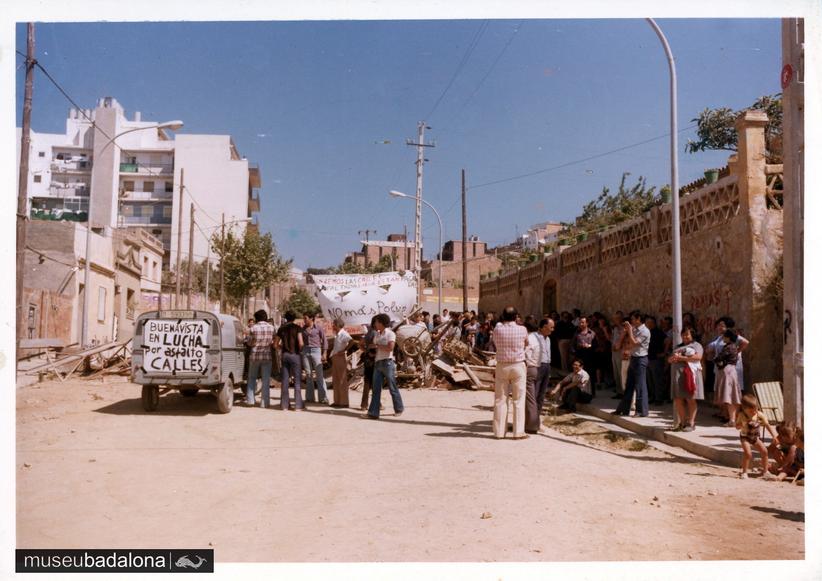 La imatge d’aquesta notícia correspont a l’avinguda de Ros i Güell, a Bonavista, tallada amb cotxes i materials i amb els veïns al carrer reclamant l’asfaltat dels carrers, durant el mes de juny de 1977.