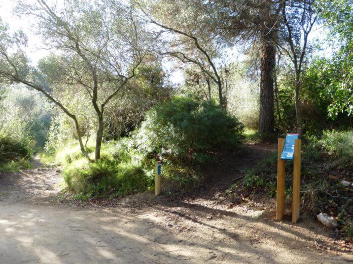 El punt de sortida és l’Escola de Natura Angeleta Ferrer – Can Miravitges. Des d’allà es pot caminar per la pedrera fins arribar al mirador, des d’on, tot passant per la font del Pop (o Beu-i-Tapa), es retorna al punt d’inici. Al llarg del camí es pot copsar com l’orografia i la composició geològica d’aquesta part de la serralada de Marina han contribuït a configurar el territori. També s’hi poden trobar comunitats vegetals típicament mediterrànies com l’alzinar, la pineda o el bosc de ribera alhora que comprovar els efectes dels incendis i la recuperació de les poblacions de la flora i la fauna que al llarg dels anys han donat lloc a grans extensions de brolles i màquies amb algun roure i alguna alzina a la part més alta del recorregut.