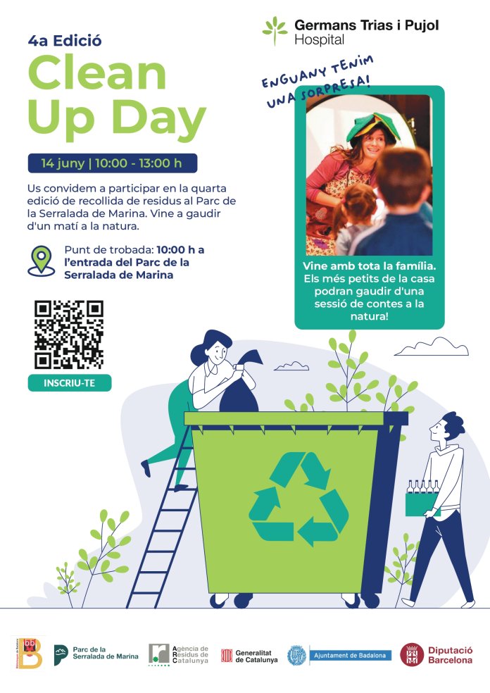 Torna el Clean Up Day de l’Hospital Germans Trias, una jornada plena d’energia, compromís i natura! El proper dissabte 14 de juny, de 10 a 13 h, tens una cita al Parc de la Serralada de Marina, un dels tresors naturals que envolten l’hospital, per celebrar la quarta edició d’aquesta activitat, que organitzem amb motiu del Dia Mundial del Medi Ambient.