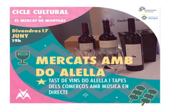 El divendres 17 de juny se celebra la tercera edició dels Mercats DO Alella al Mercat de Montgat. A partir de les 19 hores, es podrà visitar aquest certament on hi haurà vins de DO Alella i tapes elaborades pels paradistes de Montgat. També hi actuarà el grup musical Retro’s. Mercats amb DO Alella és una iniciativa impulsada pel Consorci de Promoció Enoturística del Territori DO Alella per dinamitzar els mercats municipals amb accions de promoció i a través d’una marca global. Es va crear amb l’objectiu de fomentar l’hàbit saludable de consum de producte local i sostenible, per potenciar la relació entre productors i comerciants, amb El Mercat com a nexe d’unió socialitzador.