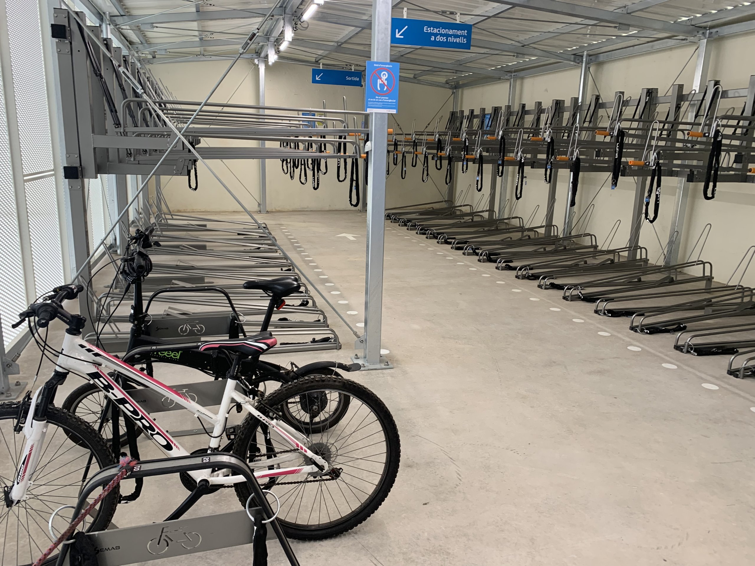 El recinte permet l’estacionament de bicicletes a doble nivell, i compta amb espai per a bicicletes d’ample especial com les bicicletes de càrrega (cargo bikes), un punt d’autoreparació i manteniment, i armariets amb endoll integrat per connectar-hi la bateria de la bicicleta elèctrica amb seguretat.