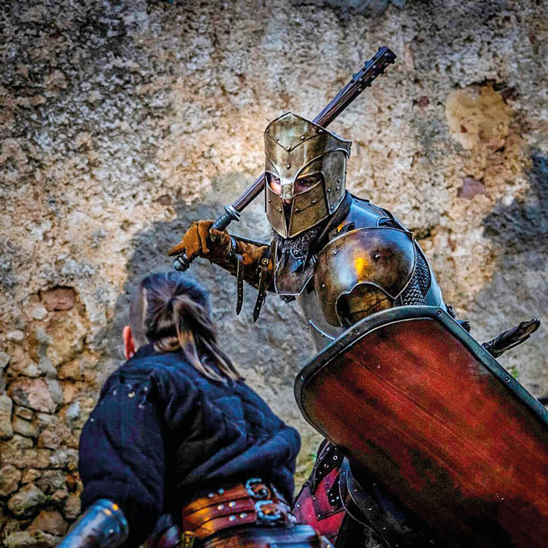 La veritat és que a la Festa Medieval farem una mica de tot. El divendres a Dalt la Vila i dissabte i diumenge a Canyadó realitzem combats vinculats a la història de la Festa. També estarem tot el cap de setmana fent ambientació al mercat medieval on instal·larem un petit campament, juntament amb dos altres grups que ens ajuden: «El Legado del Norte» i «Sorte Krager». Junts farem petites activitats, per exemple, tasques de patrulla com a soldats defensors de la Masia i el dissabte per la tarda, un torneig obert a tothom de Softcombat i moltes altres petites activitats d’ambientació que, si voleu saber quines són, ens haureu de venir a veure aquest cap de setmana.