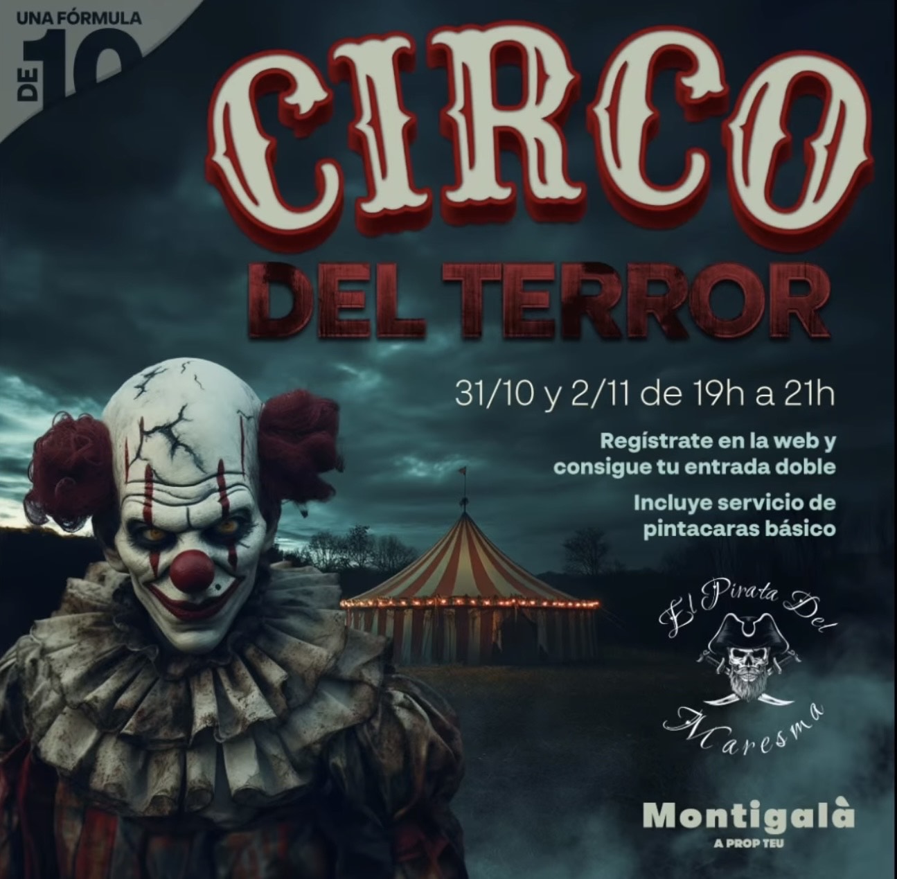 El Centre Comercial Montigalà acollirà el “Circ del Terror” els dies 31 d’octubre i 2 de novembre, coincidint amb la celebració de Halloween. Aquesta activitat, impulsada pel “Pirata del Maresma”, oferirà una experiència única i aterridora amb un circ especial que inclourà servei de pintacares. Empreses locals de Badalona també hi col·laboren, consolidant l’esdeveniment com una activitat destacada a la ciutat. L’horari del 31 d’octubre, de 19h a 21h i el dia 2 de novembre, de 19h a 21h al Centre Comercial Montigalà.