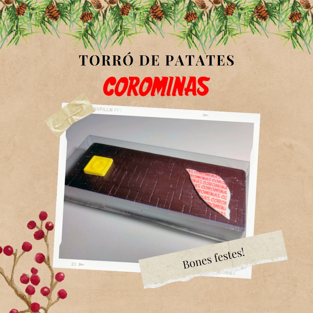 Les patates Corominas, tota una institució a la ciutat, treu a venda, un Nadal més, un torró de patates Corominas i xocolata. Aquest producte té el suport de la Pastisseria Catalunya, del carrer Sant Bru. El torró, que combina dolç i salat, el podeu comprar als mateixos establiments de Corominas i la Pastisseria Catalunya. Ja fa anys que els dos establiments col·laboren per posar a la venda cada Nadal aquest torró singular.
