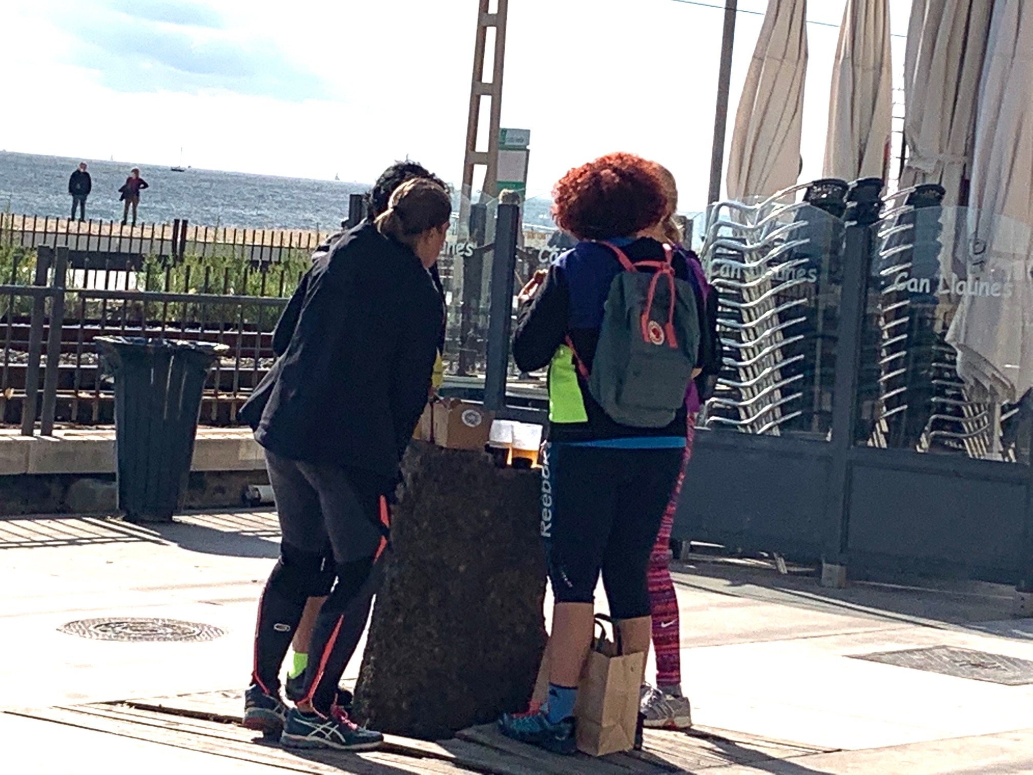 La prohibició d’obrir bars i restaurants per frenar els contagis de la Covid-19, des d’aquest divendres, s’ha traduït en aglomeracions a les places, Rambla i els parcs de Badalona. En poques hores, la gent ha passat de consumir menjar i begudes a les terrasses i a l’interior dels locals a fer-ho al carrer malgrat estar prohibit. A la Rambla, durant tot el cap de setmana, s’han vist imatges de grups de persones menjant i bevent a bancs d’arreu del passeig, tal com mostra la foto. Aquesta pràctica s’ha repetit arreu de molts punts de Badalona. D’altra banda, molts lectors del TOT han denunciat que alguns bars de la ciutat segueixen oberts i servint a clients a l’interior. Alguns establiments fins i tot, amb la persiana mig abaixada, segueixen servint a dins.