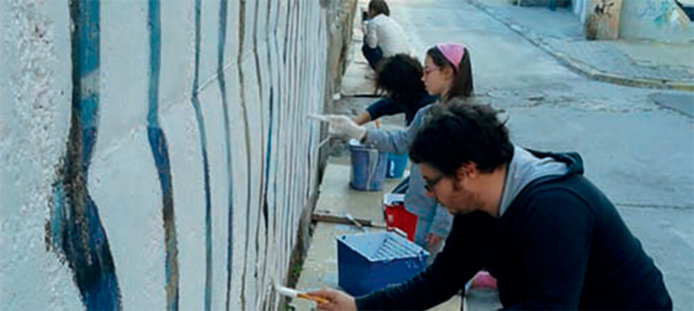 Veïns del Centre de Badalona, convocats per l’associació de veïns del barri, es van unir el passat cap de setmana per pintar amb dissenys fets en color blanc una paret bruta del carrer Eduard Maristany, davant l’estació de Renfe. El projecte “Parets en blanc” preveu ampliar-se a d’altres zones de la ciutat.