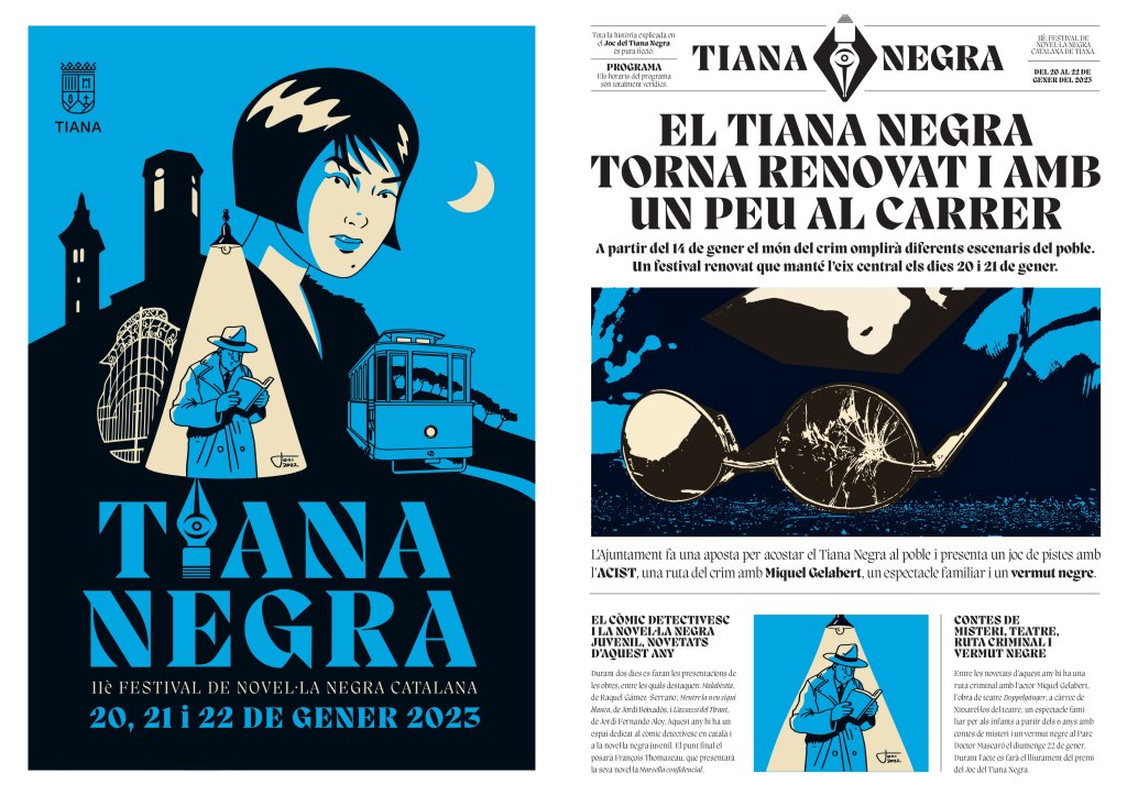 Després de la celebració dels 10 anys del Tiana Negra el 2022, el festival prepara amb molta força l’onzena edició, que se celebrarà del 20 al 22 de gener de 2023. I ho fa creixent i ampliant tant els dies del certamen, com els espais on es durà a terme i el públic al qual va dirigit. El proper Tiana Negra durarà en realitat una setmana, arrencarà el dissabte 14 de gener i no s’acabarà fins diumenge 22. Tot i que el gruix d’activitats es faran com sempre a la Sala Albèniz de Tiana els dies 20 i 21, el festival amplia els escenaris amb una Ruta Negra per tot el poble, diverses activitats a la Biblioteca de Can Baratau i la cloenda al Parc de Can Mascaró. Enguany és el primer cop que el Tiana Negra programa una activitat familiar, amb un espectacle negre infantil, una trobada que tindrà lloc diumenge 22 al matí, acompanyada per un Vermut Negre. El festival vol acostar-se a tots els públics i que grans i petits hi tinguin el seu espai.