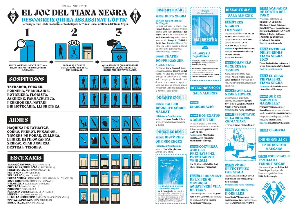 El festival de novel·la negra catalana Tiana Negra amplia els dies del certamen, els llocs on es podrà veure i el públic al qual va dirigit. L’onzena edició del festival se celebrarà el 20, 21 i 22 de gener, tot i que ja hi haurà activitats a partir de demà, dia 14.
