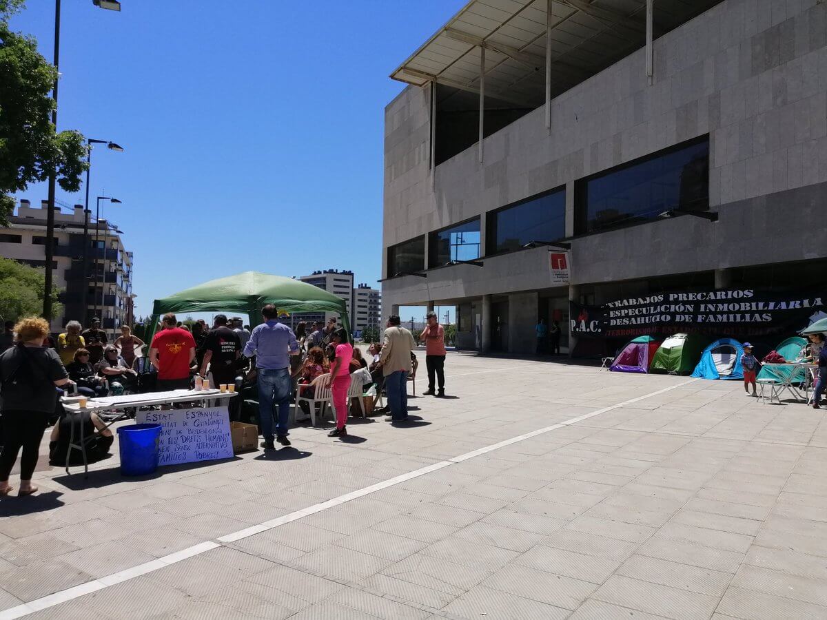 Quatre famílies del barri de La Salut porten acampanades, des del passat dimecres, davant del Palau Olímpic, després que hagin estat desnonats de casa seva. Dues de les famílies afectades han estat desnonades per impagament de lloguers, mentre que a les altres dues les han desnonat de pisos ocupats d’entitats financeres, als que havien accedit després de patir processos anteriors de desnonaments dels seus habitatges. Els afectats són vuit adults i set menors, entre els que hi ha un nadó i dos nens amb discapacitat.
