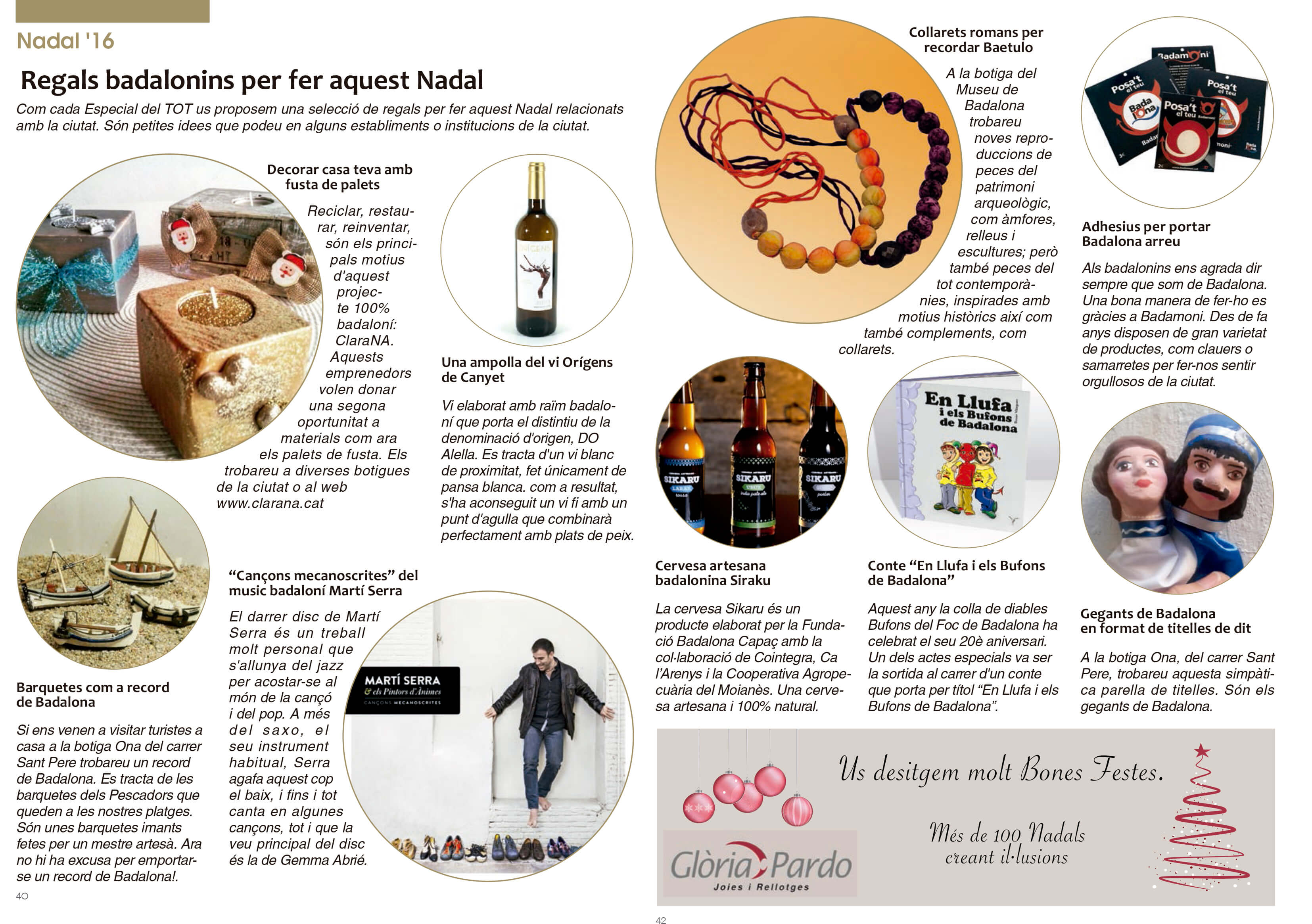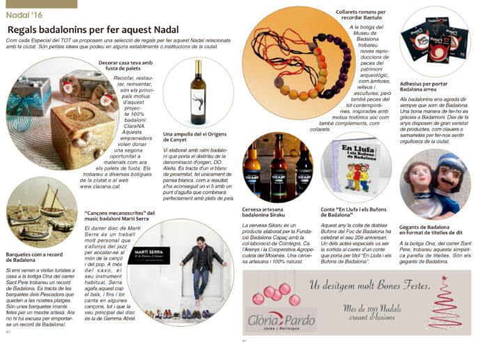 Com cada Especial del TOT us proposem una selecció de regals per fer aquest Nadal relacionats amb la ciutat. Són petites idees que podeu en alguns establiments o institucions de la ciutat.