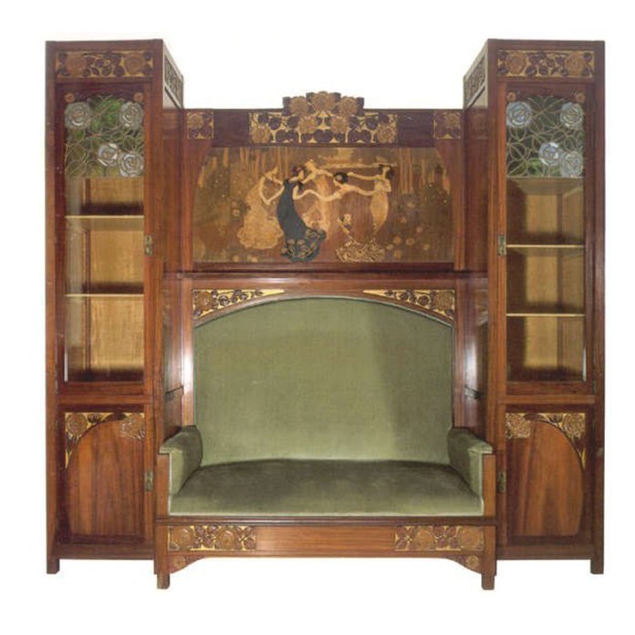 Es tracta d’un sofà amb vitrines laterals i plafó de marqueteria – “La sardana”- obra de Gaspar Homar (realitzada cap a 1903), que en el seu moment Vicenç Bosch va adquirir per casa seva.