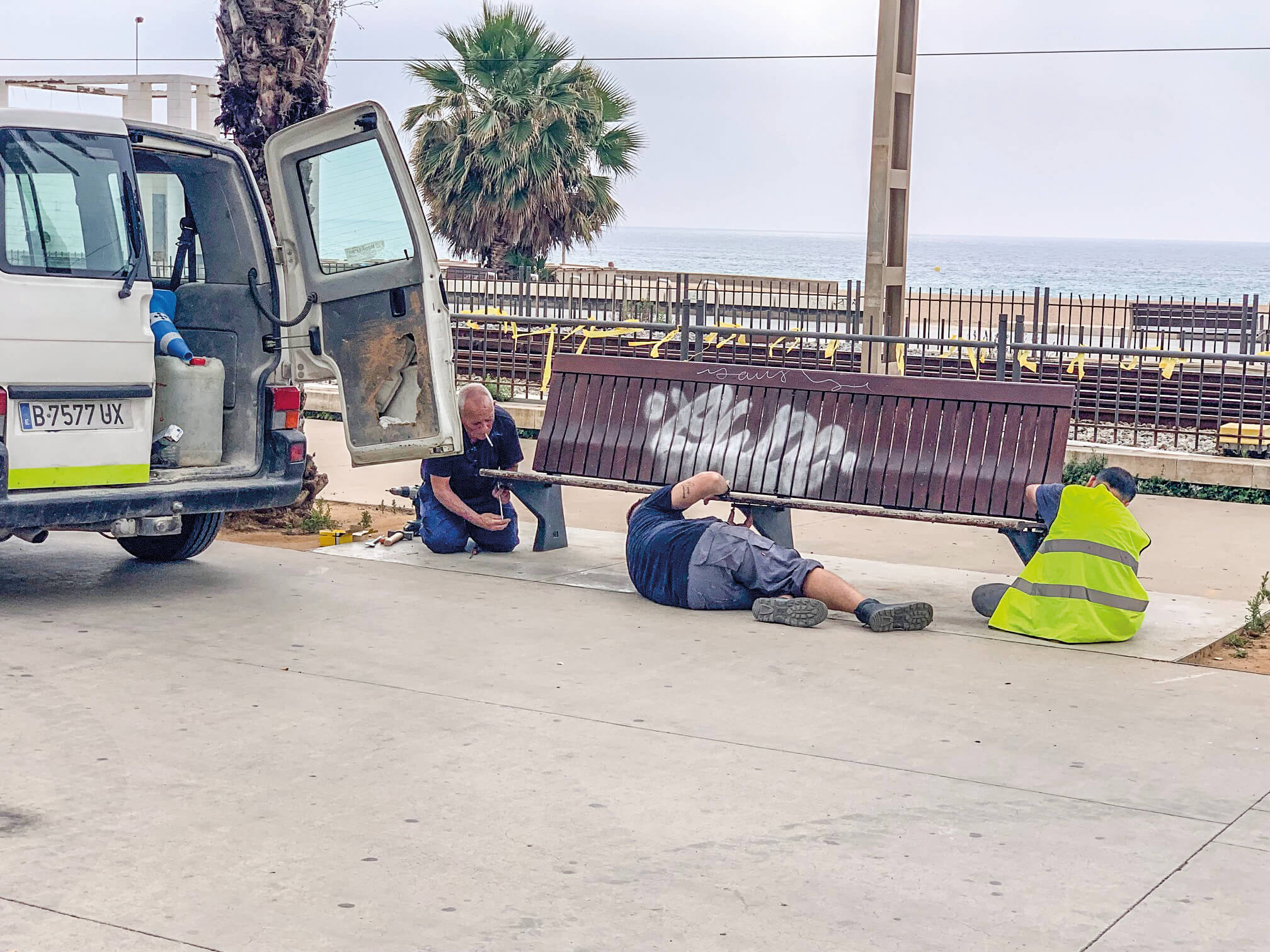 Operaris municipals estan reparant, aquests darrers dies, els bancs de la Rambla que estaven més deteriorats. La brigada està canviant les fustes o reforçant aquelles que presentaven un mal estat. Des de l’Ajuntament de Badalona ha reconegut el mal estat d’aquests bancs i una possible solució seria substituir aquests seients que tenen 11 anys. Canviar-los totalment podria costar més de 160.000 euros.
