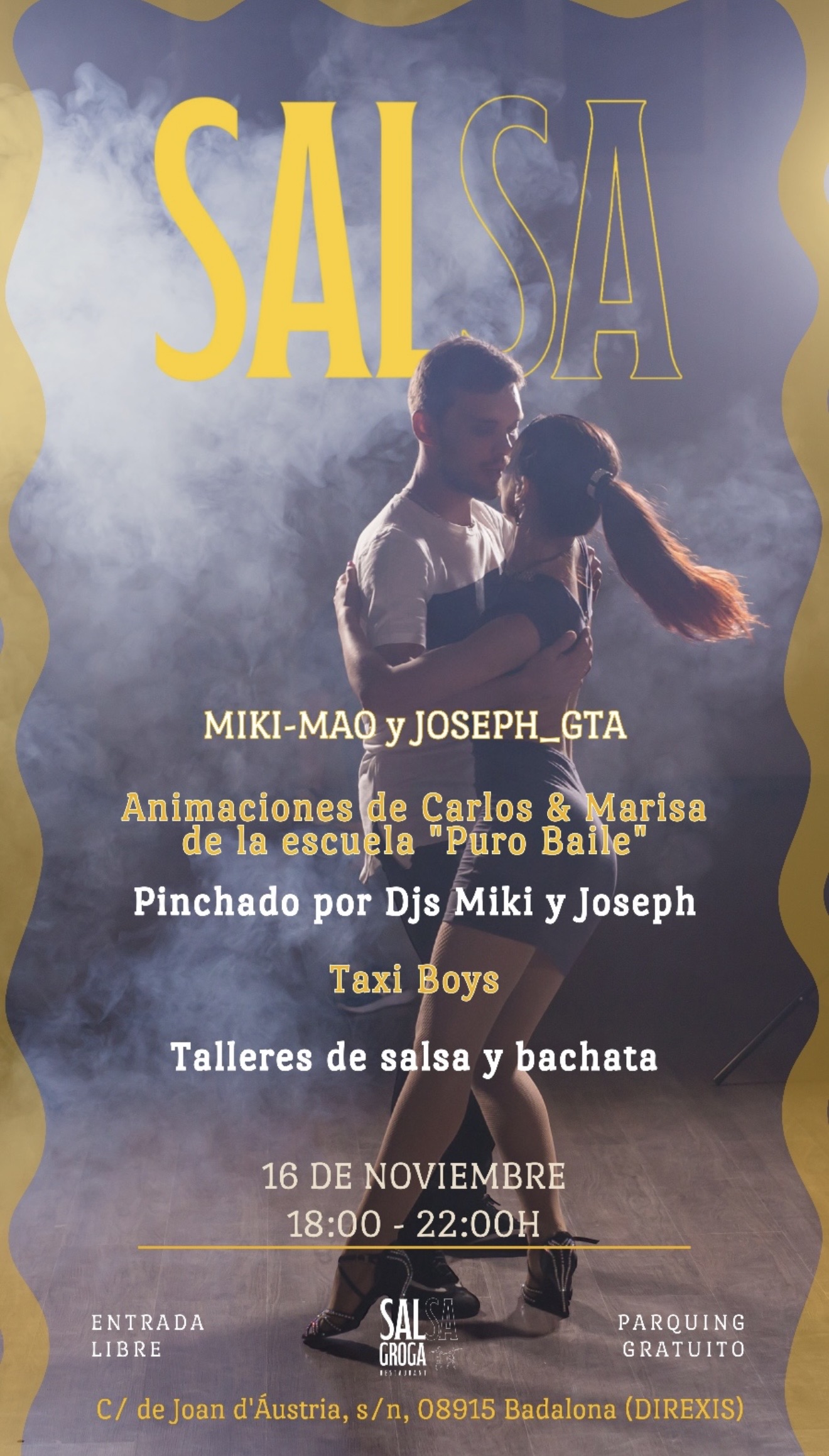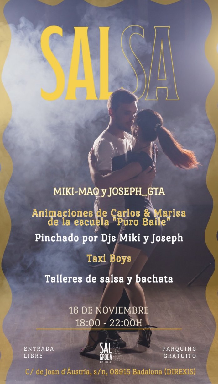 Si t’agrada moure’t al ritme de la salsa i la bachata, no et perdis aquesta oportunitat. El proper diumenge,16 de novembre, de 18:00 a 22:00, al Sal Groga (C/ de Joan d’Àustria, s/n, 08915 Badalona – Direxis) obre les portes a una vetllada plena de ball, amb entrada lliure i pàrquing gratuït.