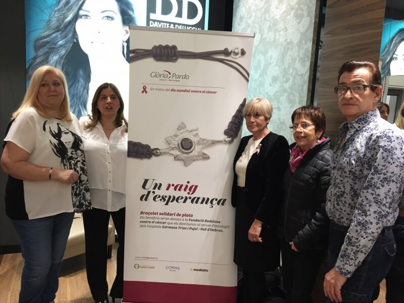 Aquest dijous 1 de juny a les 19h a la joieria Glòria Pardo (C/ Francesc Layret 12 de Badalona) es farà la presentació de la segona edició dels Braçalets solidaris. Els guanys de la venda d’aquests braçalets es destinarà a la investigació del Càncer, a l’ICO Badalona i al servei d’oncologia de la Vall d’Hebron. A l’edició anterior es van recaptar 7300 euros, 4800 es van destinar a l’ICO Badalona i 2500 van a anar al Servei d’oncologia de la Vall d’Hebron. La iniciativa està promoguda per la la joieria Glòria Pardo i té la col·laboració de la Fundació Badalona Contra el Càncer i Comas.