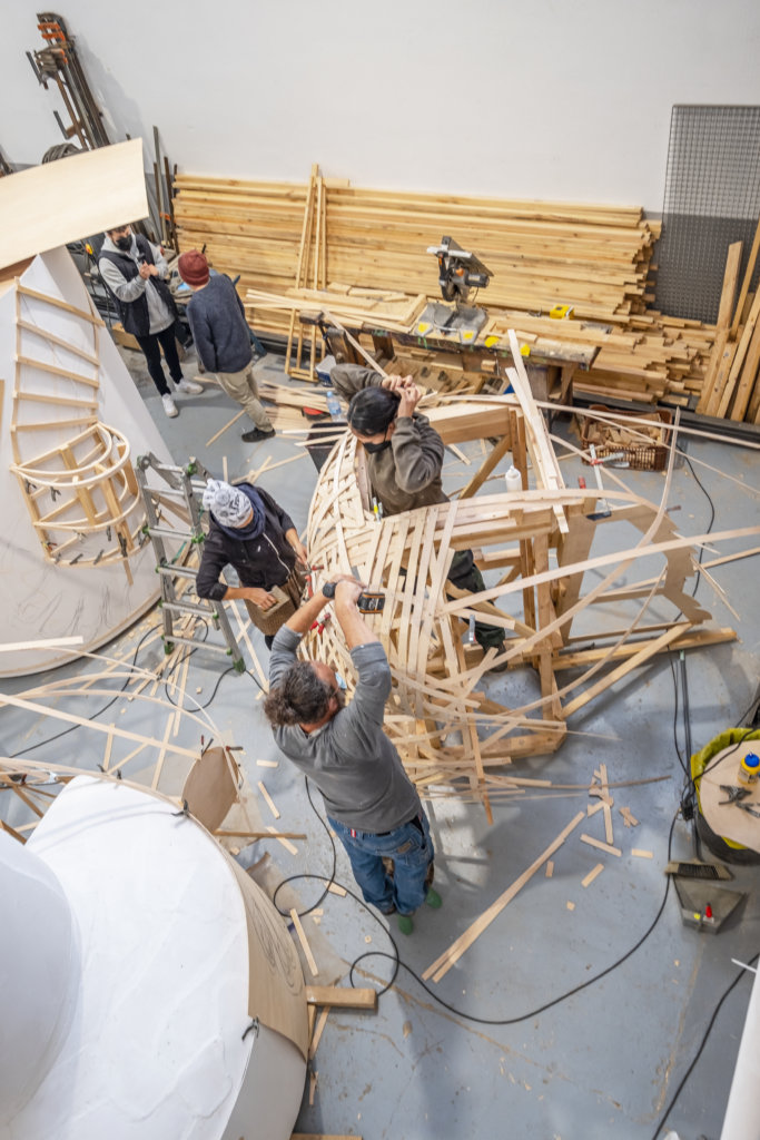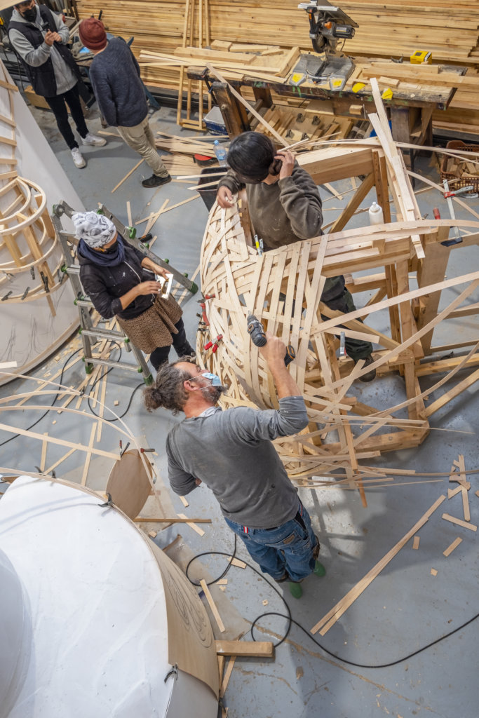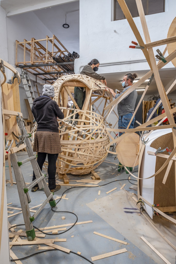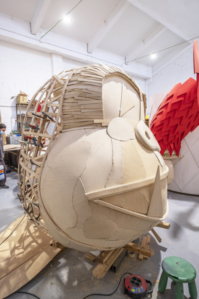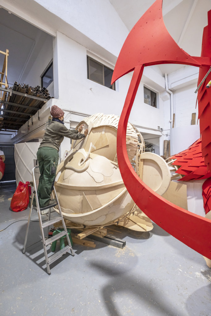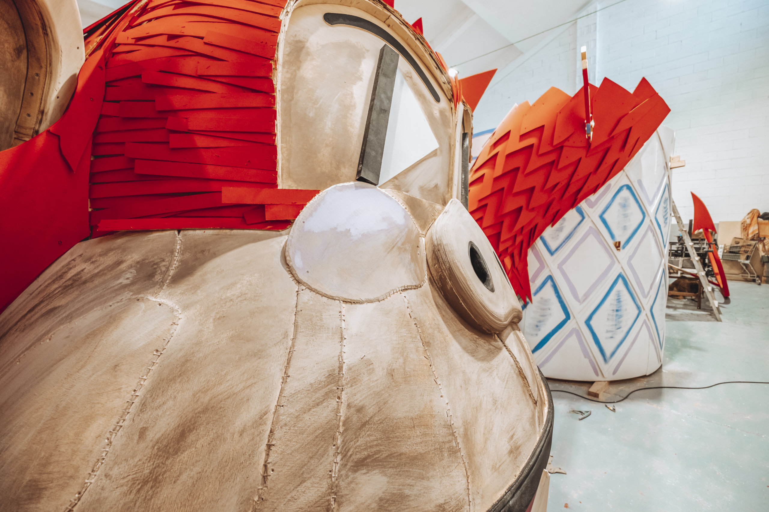 El dimoni “Moníssim” dedicat al cap de 150 anys de l’Anís del Mono, dissenyat per l’Albert Navarro, quedarà plantat en poques hores a la platja dels Pescadors. Durant les darreres setmanes, el constructor Ramon de los Heros, i el seu equip, han treballat contrarellotge en una nau del barri del Bon Pastor de Barcelona, per primera vegada, i no a la Mobba com s’havia fet els darrers anys. El dimoni d’enguany, com s’ha anat anunciant durant els darrers dies, no serà cremat la nit del 10 de maig, sinó abans, en una hora “sorpresa” i sense públic. Des del TOT Badalona hem seguit la construcció del dimoni amb l’equip del Ramon de los Heros.