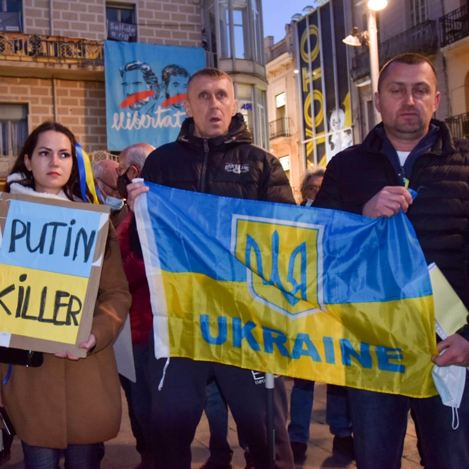 La plaça de la Vila es va omplir, aquest dimarts, per solidar-se amb el poble ucraïnès. La concentració, convocada en un primer moment per la PAC, i on van afegir-se entitats socials i ciutadanes de la ciutat i l’Ajuntament, va servir per dir ben clar “No a la guerra” i a la posició de Rússia en aquest conflicte armat a Ucraïna. Unes 700 persones nascudes a Ucraïna viuen a Badalona. Algunes d’elles van mostrar banderes grogues i blaves i pancartes demanant ajuda pel seu país i clamant contra la Rússia de Putin.