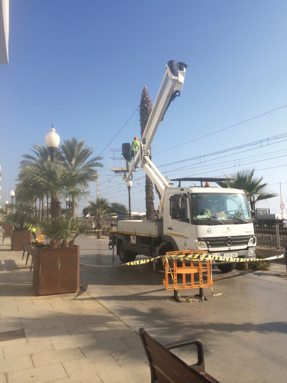Talen diverses palmeres del carrer Santa Madrona per l’aparició de l’escarabat morrut