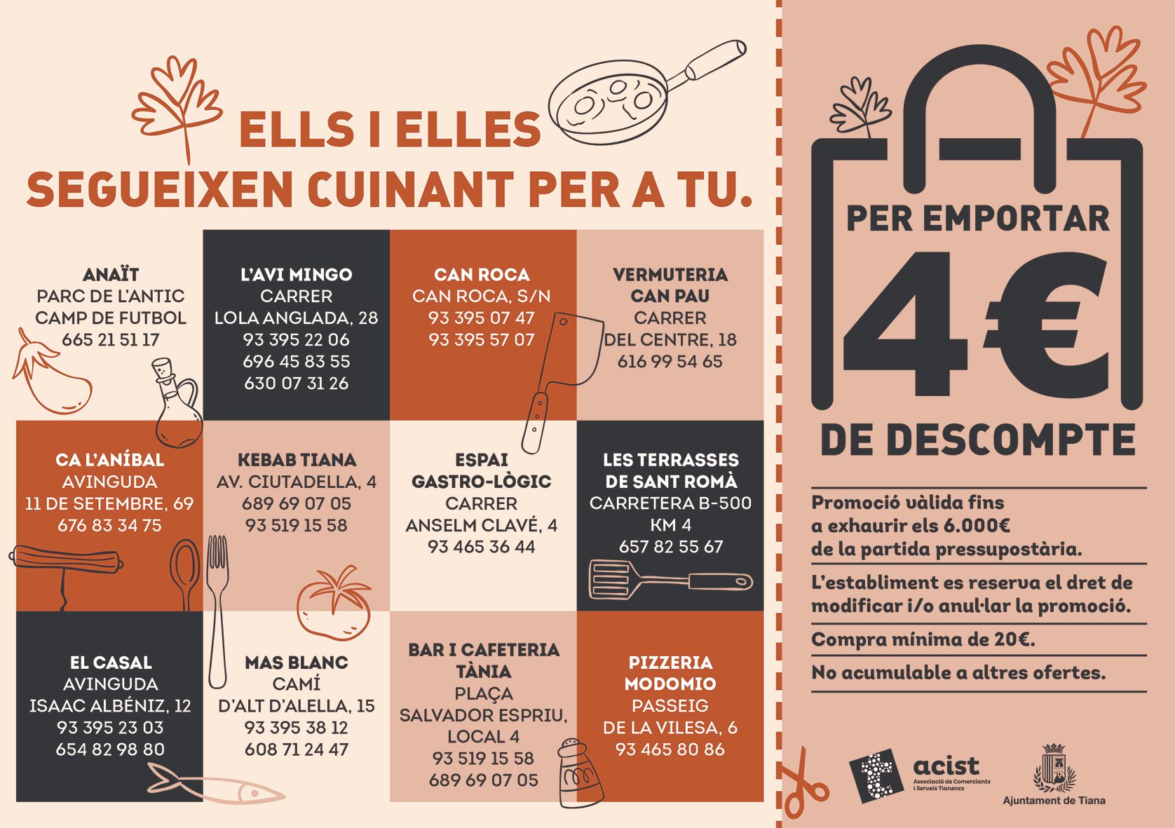 Tiana reparteix vals de 4 euros de descompte per gastar als restaurants del poble