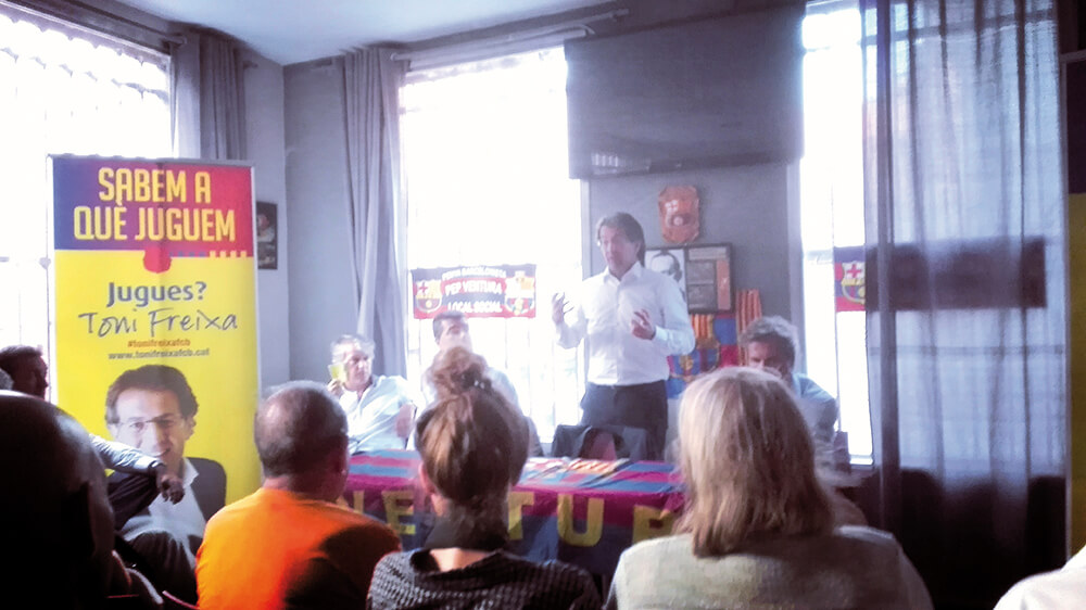 Toni Freixa, candidat a la presidència del FC Barcelona, va visitar dimarts la penya blaugrana de Badalona. Ho Va fer acompanyat de diferents membres del seu equip, va presentar el seu programa en les diferents àrees davant de tots els aficionats que van omplir la sala de la seu de la Penya Blaugrana Pep Ventura.