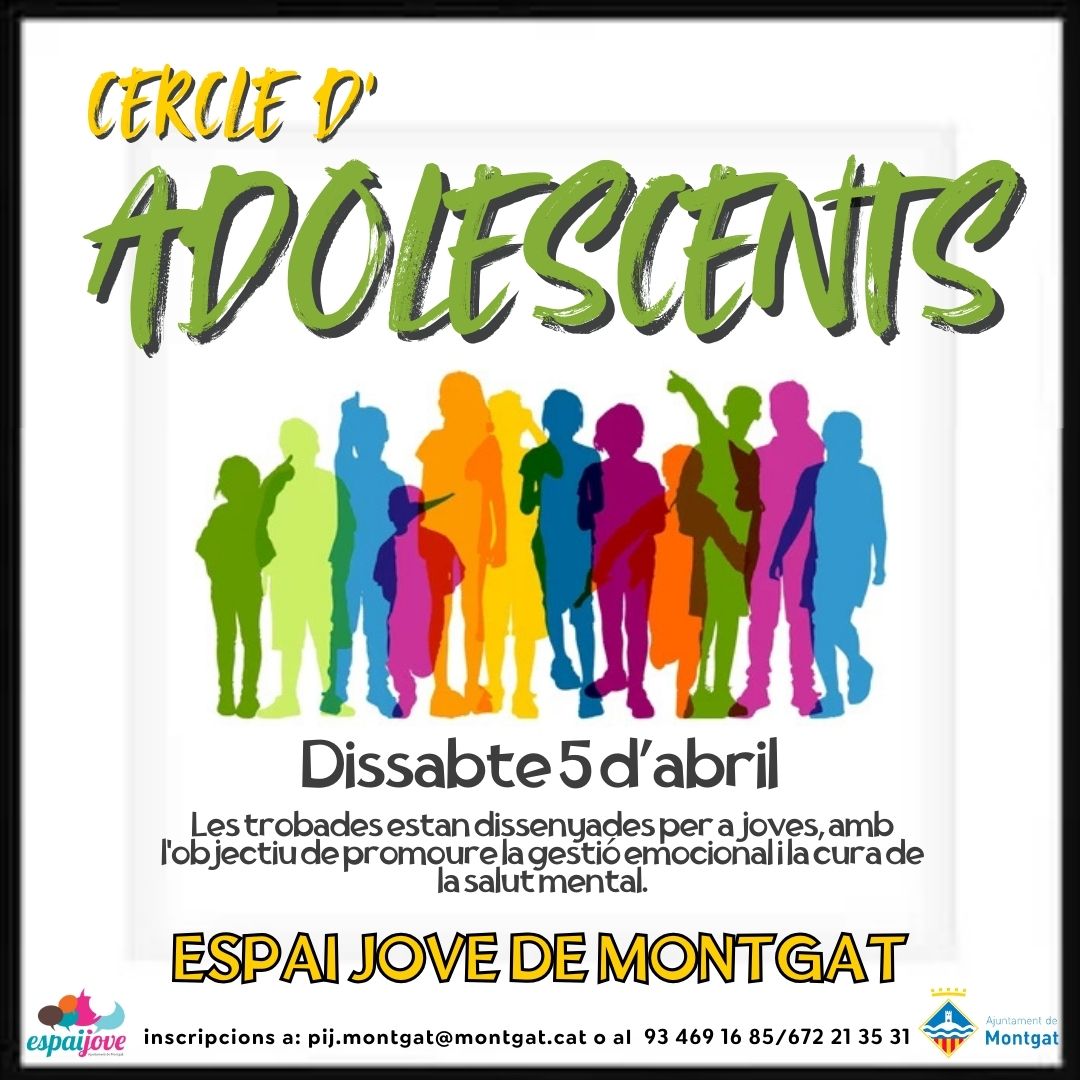 L’Espai Jove de Montgat torna a posar en marxa el Cercle d’Adolescents, una proposta gratuïta destinada a nois i noies que vulguin treballar la gestió emocional i construir una xarxa de suport en un entorn segur i respectuós. Aquesta activitat es farà un dissabte al mes, des de gener fins al maig, en horari de 17.15 h a 20.15 h.