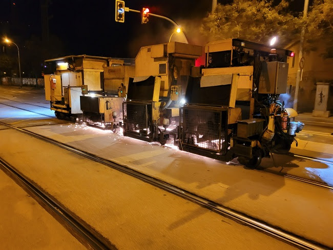 TRAM ha començat unes tasques de manteniment que es realitzen cada dos anys a les vies del tramvia per seguir garantint una sensació de confort i seguretat en els seus viatges. S’està aplicant la tècnica de l’esmerilat, que consisteix en polir la superfície de les vies amb pedra esmeril, a diferents trams de la xarxa tramviària per tal que els tramvies circulin millor i el viatge sigui més suau, còmode i silenciós. Els treballs han començat a la xarxa Trambesòs, on continuaran tota aquesta setmana, i es realitzaran també a la xarxa Trambaix durant les dues primeres setmanes de desembre. L’esmerilat s’aplica amb uns vehicles especials adaptats a les vies del tramvia i es realitza en horari nocturn per tal de no interrompre el servei habitual i garantir la mobilitat de les persones usuàries. TRAM duu a terme constantment diferents tasques de manteniment i innovació en la consecució de la seva missió: transportar persones en tramvia de forma que els permeti gaudir d’un servei de mobilitat eficient i respectuós amb la societat i el medi ambient.