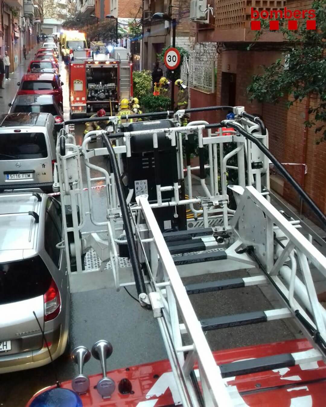 Nou incendi d’habitatge al barri de Montigalà. Segons han informat els Bombers, el foc (avís 09.21h) ha afectat el 2npis d’un bloc de 6 plantes al carrer d’Otger,20. 6 dotacions dels Bombers han estat activades durant aquest incendi. El foc ja està extingit en poca estona. Tres membres d’una família (pare, mare i menor), així com un gosset, han resultat afectats per fum i cremades de diversa consideració, segons han informat Bombers. Les 3 persones afectades per l’incendi han estat derivades a centres hospitalaris per amb cremades i inhalació de fum menys greu. La mare i la filla menor d’edat a Vall d’Hebron i el pare a la cambra hiperbàrica de l’Hospital Moisès Broggi. Foto: Bombers