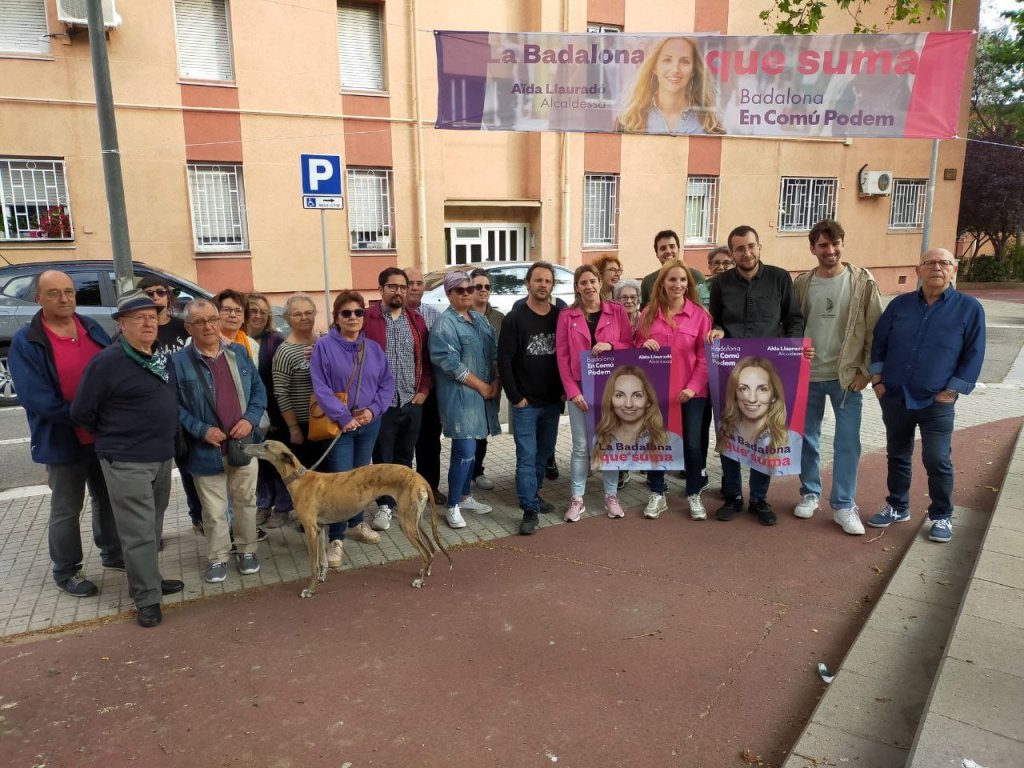 Guanyem Badalona a la plaça dels Països Catalans, al barri del Progrés.