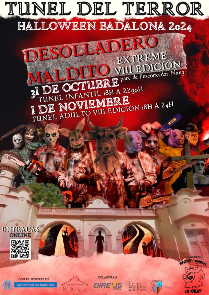 El “Desolladero Maldito” ofereix dues sessions: dijous 31 d’octubre es farà el túnel infantil de 18 h a 22:30 h, i divendres 1 de novembre tindrà lloc el túnel per a adults, de 18 h a 24 h. Aquesta activitat s’ha convertit en un clàssic de Halloween a Badalona i cada any atreu més persones disposades a gaudir d’una experiència de por única.