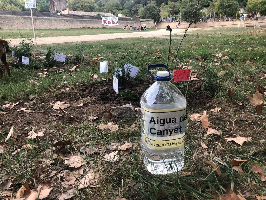 També s’han regalat diverses garrafes d’aigua recollida de la riera de Canyet que va parar a la claveguera