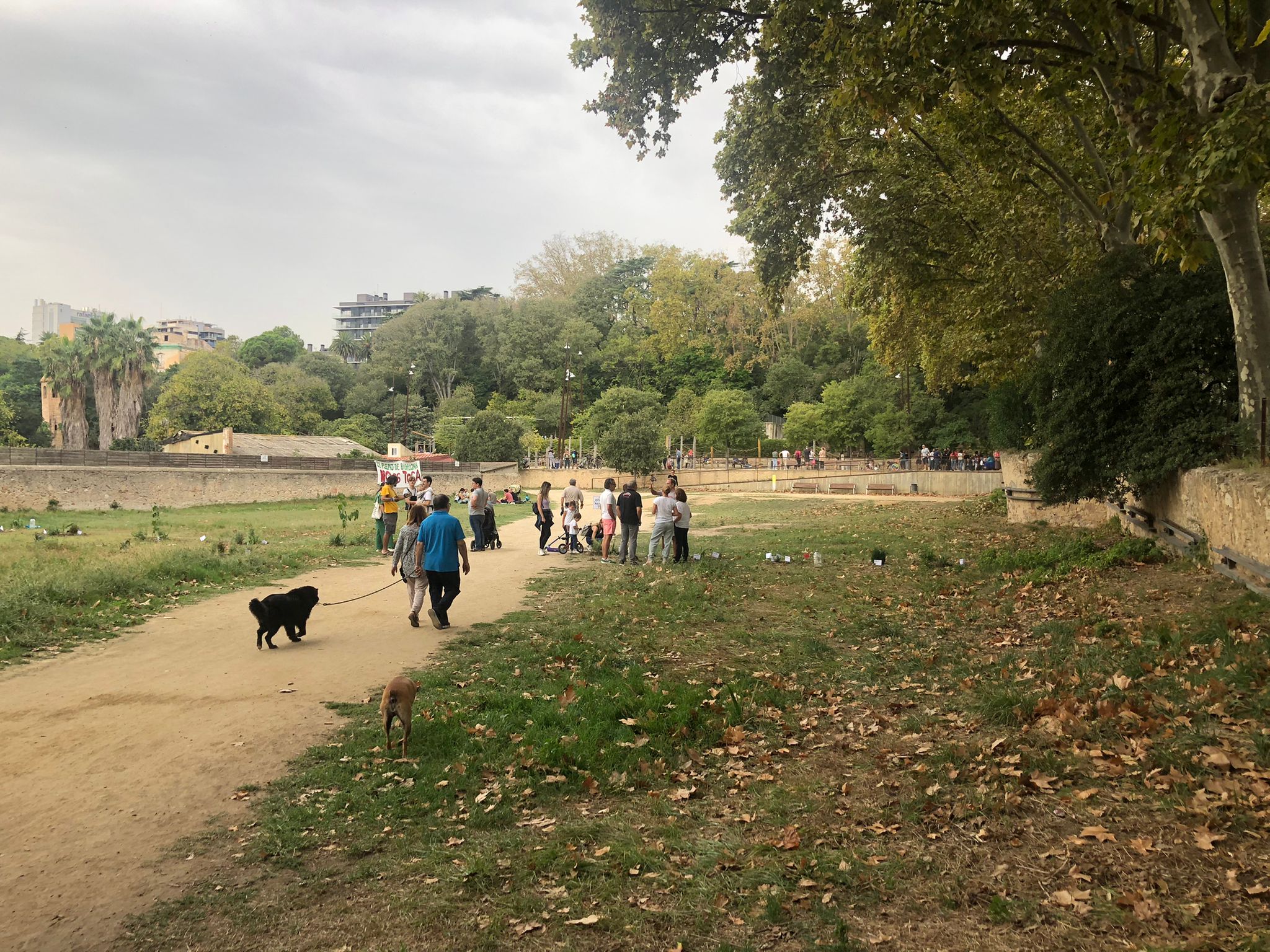 L’acte organitzat per Defensem Ca l’Arnús, El Verds Badalona, AV Iris Sol Casagemas i Més VerdUrbà Badalona ha volgut simbolitzar, amb aquesta filera d’arbres plantats, la retallada que patirà el parc amb la possible construcció de dos blocs de pisos al seu interior. També hi havia un punt de recollida de firmes a favor d’aturar l’edificació i mantenir els límits actuals del parc.