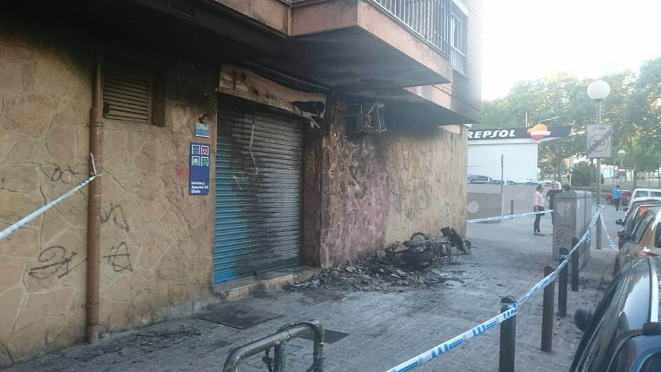 Aquesta matinada, cap a les 3, s’ha registrat l’incendi d’una moto davant dels números 5-7 del Passatge Riu Ter, a Lloreda. El foc ha afectat també dos cotxes aparcats, la façana de l’edifici, on també hi ha una administració de loteries i un balcó on s’ha cremat un tendall i una bicicleta. Els veïns de l’edifici han estat desallotjats, durant uns minuts. Una dotació els bombers han participat en aquest incendi. En aquesta zona de Badalona s’estan registrant, des de fa setmanes, diversos incendis als contenidors situats a la via pública. Foto: Juanka Calderon (via Facebook)