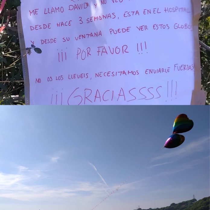 La mare d’en David, de 5 anys, està ingressada des de fa 3 setmanes en una habitació de l’Hospital Germans Trias de Badalona. Com fa 3 setmanes que la mare del David està a l’hospital, sense poder rebre visites per l’actual situació sanitària per la Covid-19, el David ha enlairat, aquest dissabte, uns globus davant de l’hospital badaloní per donar-li ànims a la seva mare. Els globus, acompanyats d’una nota, han estat enlairats a la Serralada de Marina, just davant les finestres de Can Ruti. A la nota, el David demana que ningú retiri els globus perquè així la seva mare pugui animar-se, i donar força, amb aquests globus enlairats.