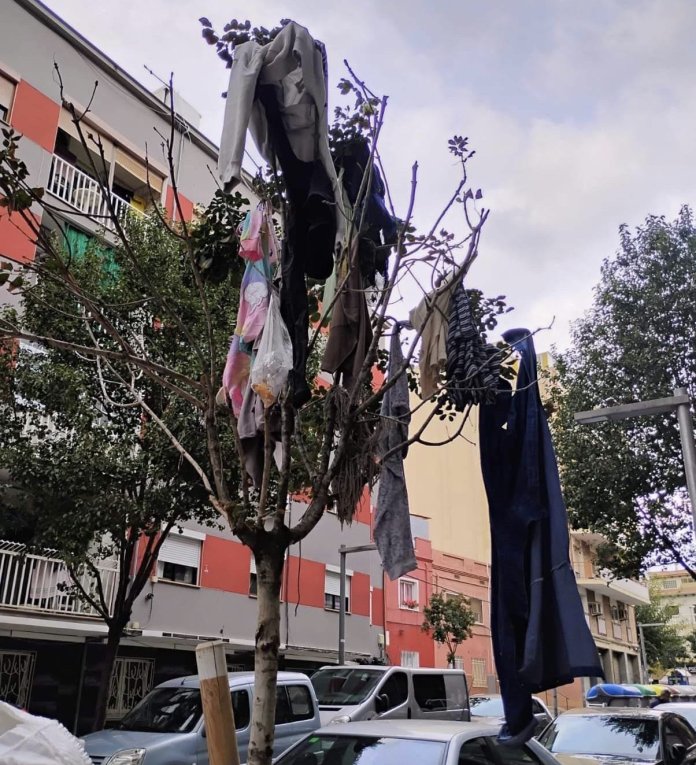 Els serveis de neteja municipals han d’intervenir sovint per retirar la roba que el veí deixa escampada pels arbres i la via pública. Malgrat aquestes actuacions, el problema es repeteix una i altra vegada, afectant la convivència del veïnat, que reclama una solució urgent a l’Ajuntament.