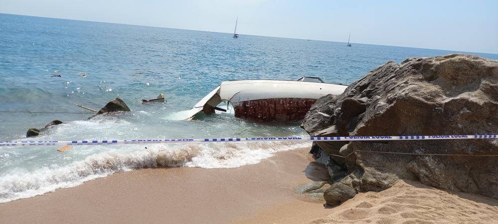 L’embarcació va sortir del port de Badalona dilluns a la tarda i es va accidentar entre les platges de la Murtra i de les Roques Blanques, a Sant Pol. Els dos tripulants van poder saltar a l’aigua abans del xoc contra les roques i en van sortir il·lesos. L’embarcació hauria perdut el control i s’hauria encallat.