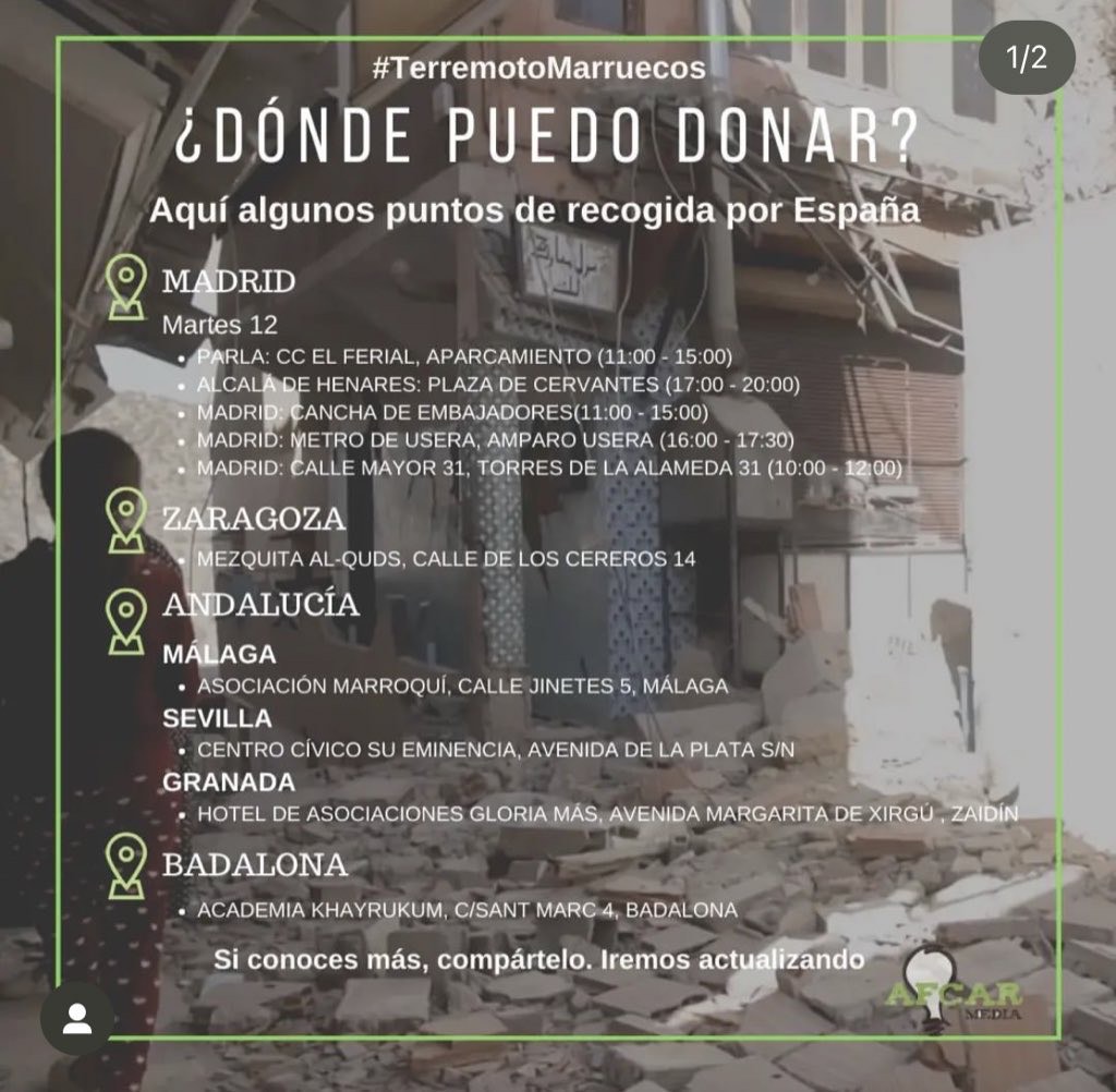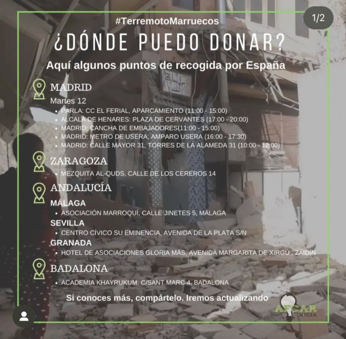 La comunitat marroquina de Badalona ha fet una crida per les víctimes del terratrèmol, que ja ha superat els 2.600 morts. A l’Estat s’han habilitat diversos punts on recollir material. Un d’aquest punt els trobareu a Badalona, en concret a l’Academia Khayrukum, al carrer de Sant Marc, 4. En aquest punt s’han centralitzat la recollida de material.
