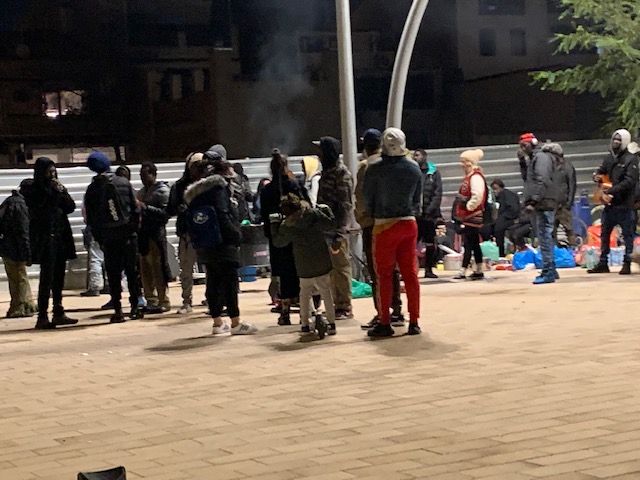 Sense alternativa. Una quarantena de persones que malvivien a la nau del carrer Progrés, i que van ser desallotjats aquest dijous, han passat la nit al ras. Fins ahir a la tarda, els desallotjats varen poder treure les seves pertinences, no totes, perquè no saben on portar-les. Els guàrdies de seguretat privada, sis, contractats per la Sareb, propietària de la nau, va permetre de dos en dos entrar a la nau per buscar els seus objectes. Fora, a la plaça del Cotonifici, s’aplegaven bona part dels desallotjats. Al vespre, molts tenien clar que no tenien alternativa on anar i de moment una quarantena d’ells han passat la nit al ras, a la mateixa plaça, amb temperatures que han baixat als 4 graus. De moment, segons fonts municipals, només 7 persones s’han adreçat a Serveis Socials per buscar una solució temporal. Diverses entitats han demanat ja mantes i tendes per poder acampar en aquest espai, a pocs metres dels nous pisos d’aquesta plaça. De moment, han passat la primera nit sense cap sostre.