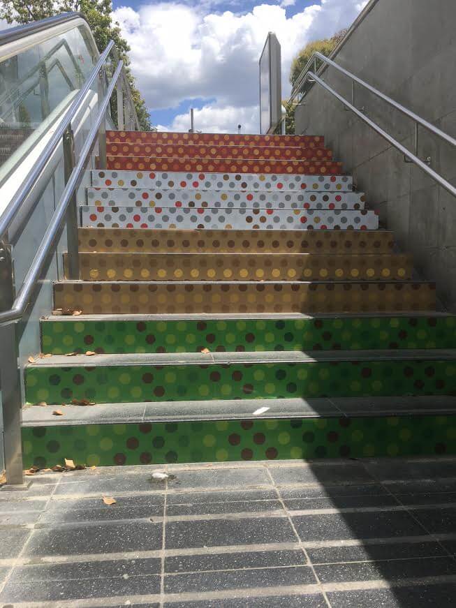 Fins aquesta setmana l’escala de l’estació de metro a Pep Ventura participa a l’edició 2017 de l’Swab Stairs. Es tracta d’un certamen que exhibeix talent jove en les principals escales de metro de Barcelona. A Badalona, i gràcies a l’escola d’Art Superior Pau Gargallo, la Irene Durán ha pogut utilitzar els seus estudis de biologia per tirar endavant aquest disseny que podem trobar a les escales de l’estació de la L2 de Pep Ventura. El treball, que porta per nom “Ecostrats” té inspiració en el ecosistema i la tecnologia.