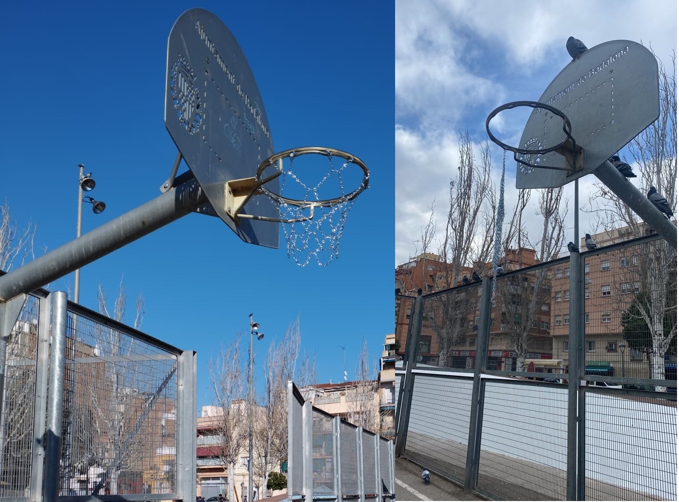 La falta de pistes de bàsquet a la ciutat de Badalona és una preocupació que fa temps que està present entre la ciutadania. S’ha demanat en diverses ocasions una major inversió en el manteniment de pistes al carrer, sobretot per revertir el mal estat de les cistelles. Dijous es van renovar les cistelles de la plaça de les Brigades Internacionals per unes cistelles antivandàliques. 12 hores després, quatre de les cistelles van quedar destrossades sense la xarxa metàlica.