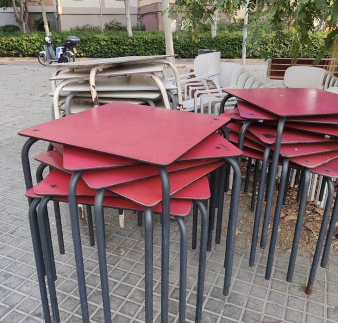 A tot això s’hi suma la presència de mobiliari vell del restaurant abandonat a la via pública des de les obres de fa mesos: cadires i taules encadenades, plenes de pols, brossa i restes insalubres. “Fa uns dies en va sortir una rata més gran que la meva gossa”, denuncien.