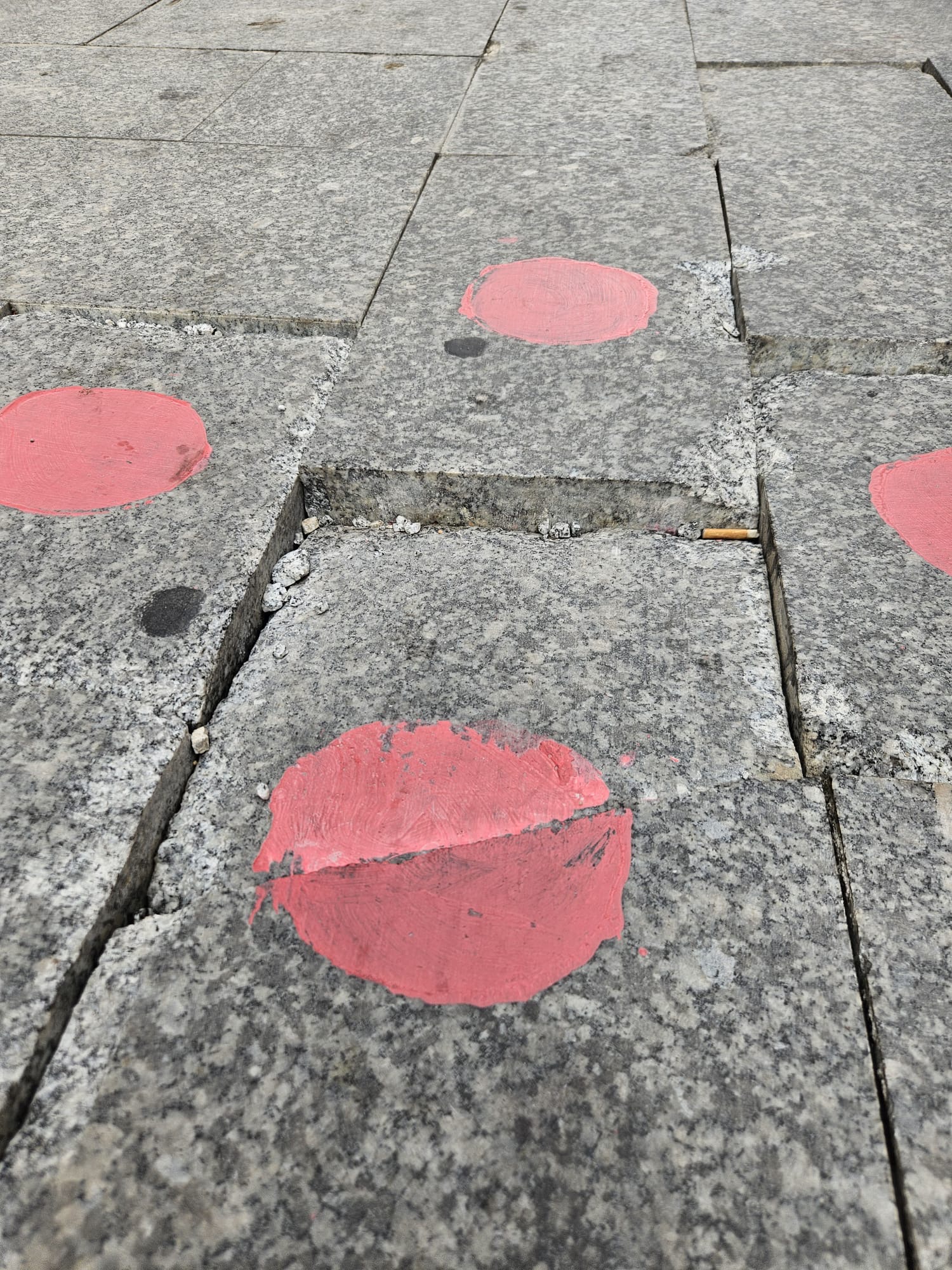 Els veïns del carrer Marina, al barri del Centre i a tocar de la plaça Pompeu Fabra, han decidit actuar pel seu compte davant el mal estat del paviment. Per alertar vianants i també l’Ajuntament de Badalona, han començat a marcar amb punts vermells les rajoles que es mouen o estan trencades.