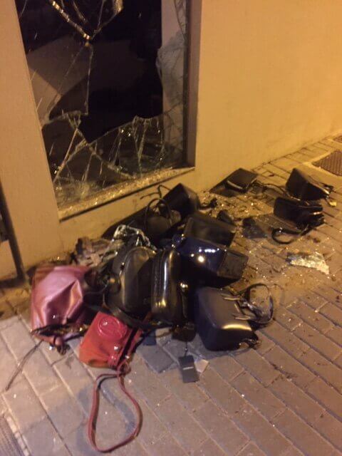 Aquest dimecres, 11 de desembre, a les 6:10h del matí dos lladres van rebentar els vidres de la botiga Art-Vià del carrer Canonge Baranera cantonada amb el carrer Francesc d’Assís, al Centre de Badalona. Segons ha explicat la propietària de la botiga al TOT, els lladres, que anaven en casc, van trencar el vidre d’un dels aparadors de l’establiment i van començar a buidar-lo de bosses. A tota velocitat, i gran violència, els lladres van treure al carrer les bosses per robar-les. Els crits de la propietària de la botiga, que estava a la finestra, van alertar al veïnat que van sortir corrents. Amb escombres a la mà, els veïns van poder fer caure un dels lladres quan ja marxaven en moto carregat de les bosses robades. Els veïns el van poder detenir fins que van arribar els Mossos d’Esquadra. L’altra va poder fugir. Des d’Art-Vià, han volgut agrair, a través del TOT, la valentia i absolut desinterès dels veïns que van participar en l’acció.